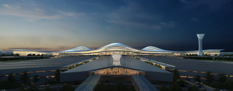 烏魯木齊天山國(guó)際機(jī)場(chǎng)的擴(kuò)建工程是國(guó)家“十三五”“十四五”重點(diǎn)建設(shè)項(xiàng)目,總投資約520億元,規(guī)劃建設(shè)兩條4F級(jí)跑道、50萬平方米的T4航站樓、177個(gè)停機(jī)位及綜合交通中心等設(shè)施;航站區(qū)采用“主樓+三指廊”構(gòu)型,地上四層、地下一層,可容納年旅客吞吐量3500萬人次,貨郵吞吐量55萬噸
